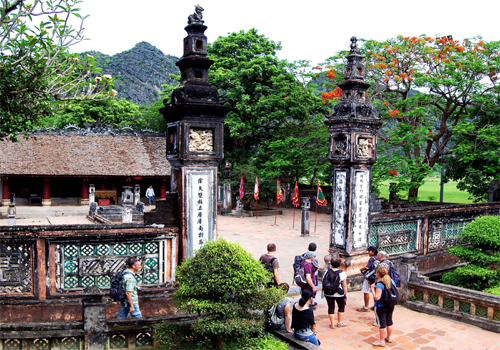 10:30 Đến Ninh Bình, Quý khách tham quan Cố đô Hoa Lư - Kinh đô của nước ta vào thế kỷ X. Quý khách viếng 2 ngôi đền Đinh - Lê có từ thế kỷ 17, nghe truyền thuyết và những câu chuyện về vị vua Đinh Tiên Hoàng nổi tiếng và công cuộc dựng nước của cha ông.