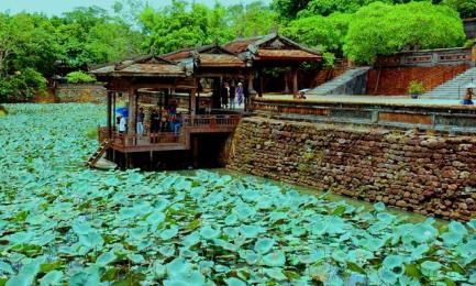 Chiều: Xe đưa Quý khách tham quan Đại Nội (Hoàng Cung của 13 vị vua triều Nguyễn, triều đại phong kiến cuối cùng của Việt Nam: Ngọ Môn, Điện Thái Hoà, Tử Cấm Thành, Thế Miếu, Hiển Lâm Các, Cửu Đỉnh) và Chùa Thiên Mụ cổ kính, xây dựng từ những năm đầu của thế kỉ XVII.